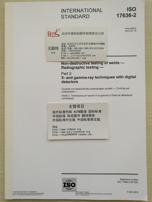 所属分类:首页 >> 国外进口出版物 >> 进口原版 ISO 标准 >> 进口 ISO 17636-2 1st Edition, January 15, 2013 Non-destructive testing of welds - Radiographic testing - Part 2: X- and gamma-ray techniques with digital detectors
