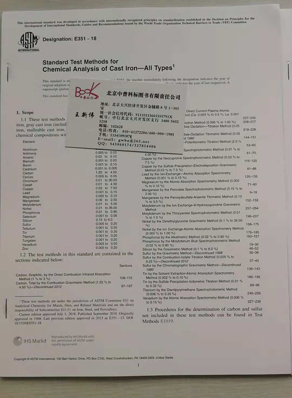 所属分类:首页 >> 国外进口出版物 >> 进口版ASTM标准+图谱 >> 美国进口原版 ASTM E351-2018