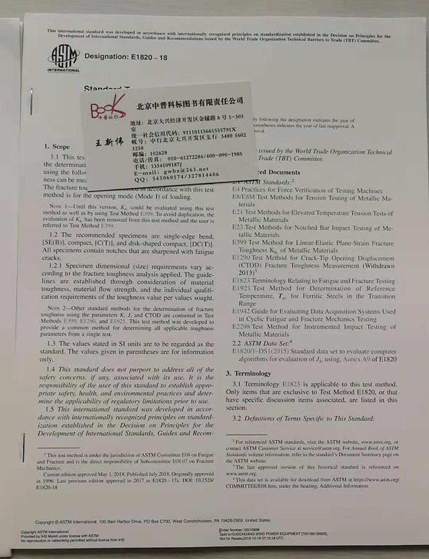 ASTM E1820 2018 Edition, May 1, 2018 Standard Test Method for Measurement of Fracture Toughness<…